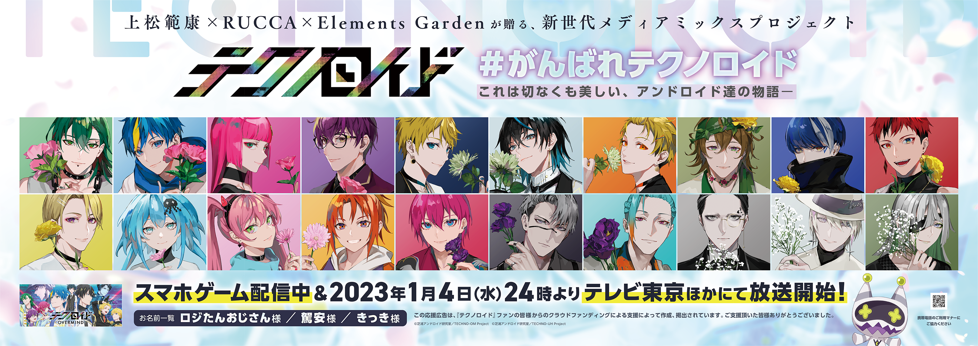 新型コロナウイルスの影響に伴うTVのアニメ『テクノロイド オーバーマインド』の延期という不測の事態を乗り切るべく、5月31日(火)〜7月21日(木)まで実施していた、「#がんばれテクノロイド 応援広告でジャックしよう!」プロジェクトにおいて、プロジェクトを達成し、本日より東京・大阪他にて応援広告の掲示をいたします。