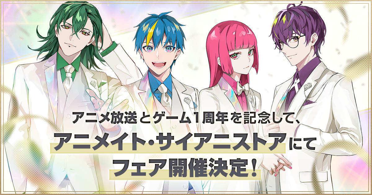 アニメ放送開始とゲームリリース1周年を記念したアニバーサリーフェアを、アニメイト、CYBER ANIME STORE(https://cyber-anime-store.jp/)にて開催いたします。