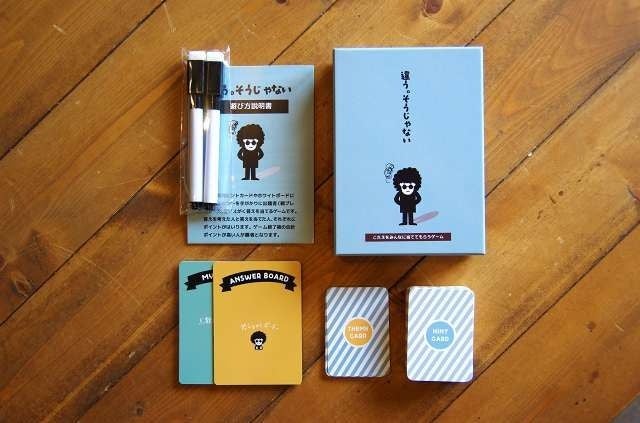 「違う。そうじゃない」は、二択のヒントカードとスペシャルカードを手がかりに、出題者の答えを導きだすゲームです。最も早く正解したプライヤーと出題者に得点がはいりますが、「早く正解すると得点が少なくなる」というルールが大きな特徴。