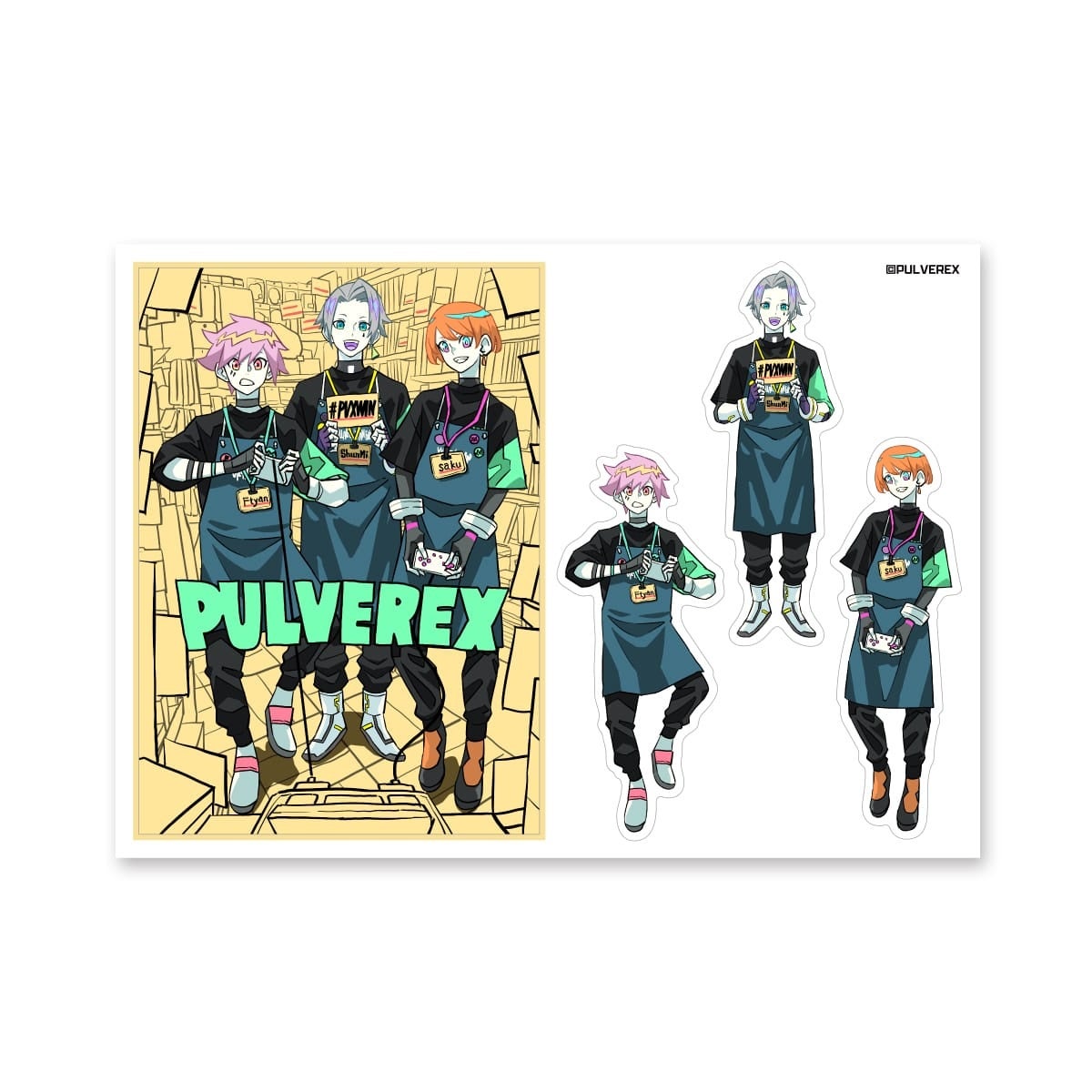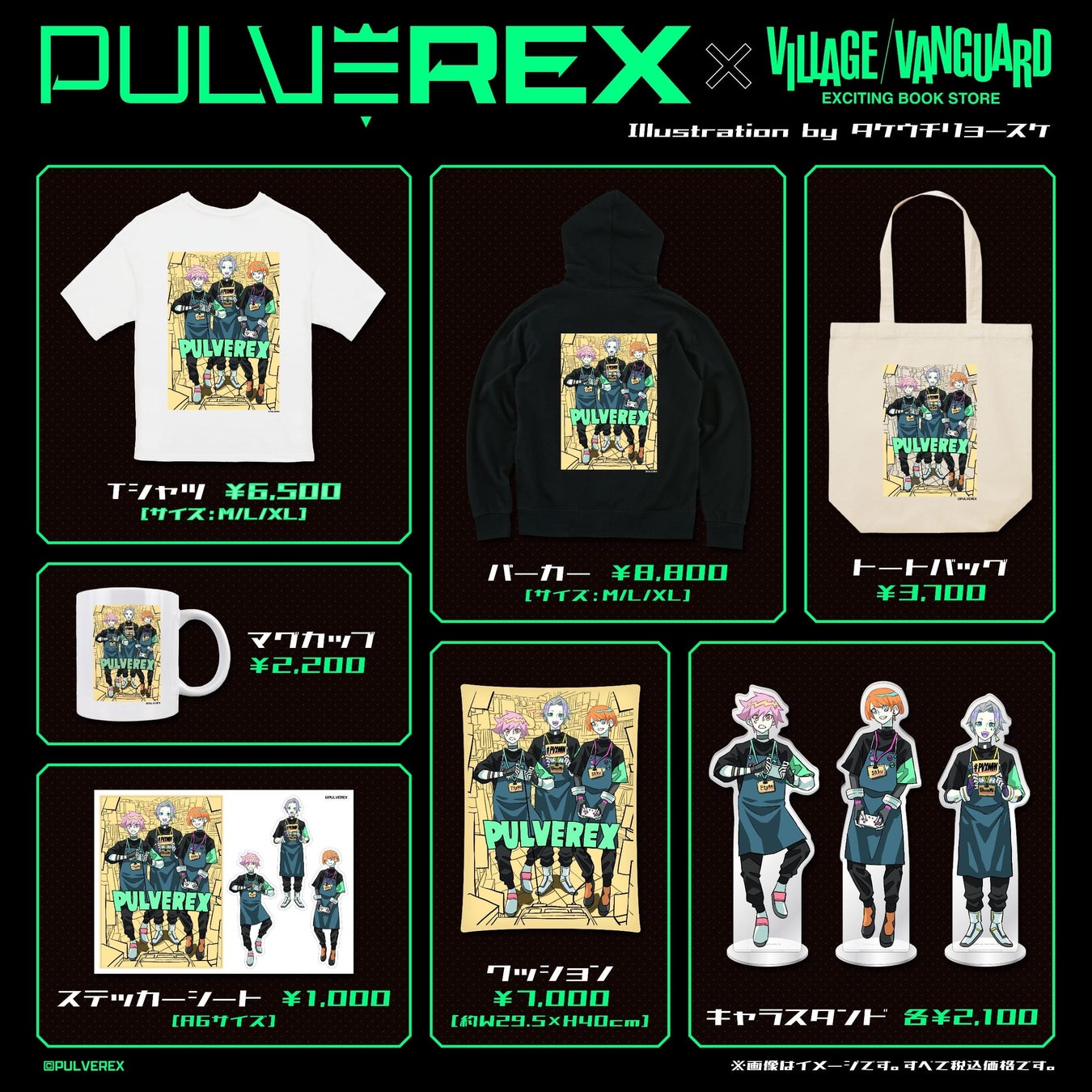 プロeスポーツチームのPULVEREX(パルブレックス)とイラストレーター・タケウチリョースケさんとヴィレヴァンのトリプルコラボグッズが爆誕!!Apex Legends部門のFtyanさん、sakuさん、ShunMiさんの3人が、ヴィレヴァンでレトロゲームを楽しんでいる様子をテーマに、新規描き下ろしイラストをタケウチさんに制作いただきました。こちらのイラストを使用したグッズをオンラインストアと全国6店舗のヴィレヴァン店頭にて予約を受付します!ぜひみなさんチェックしてみてくださいー!