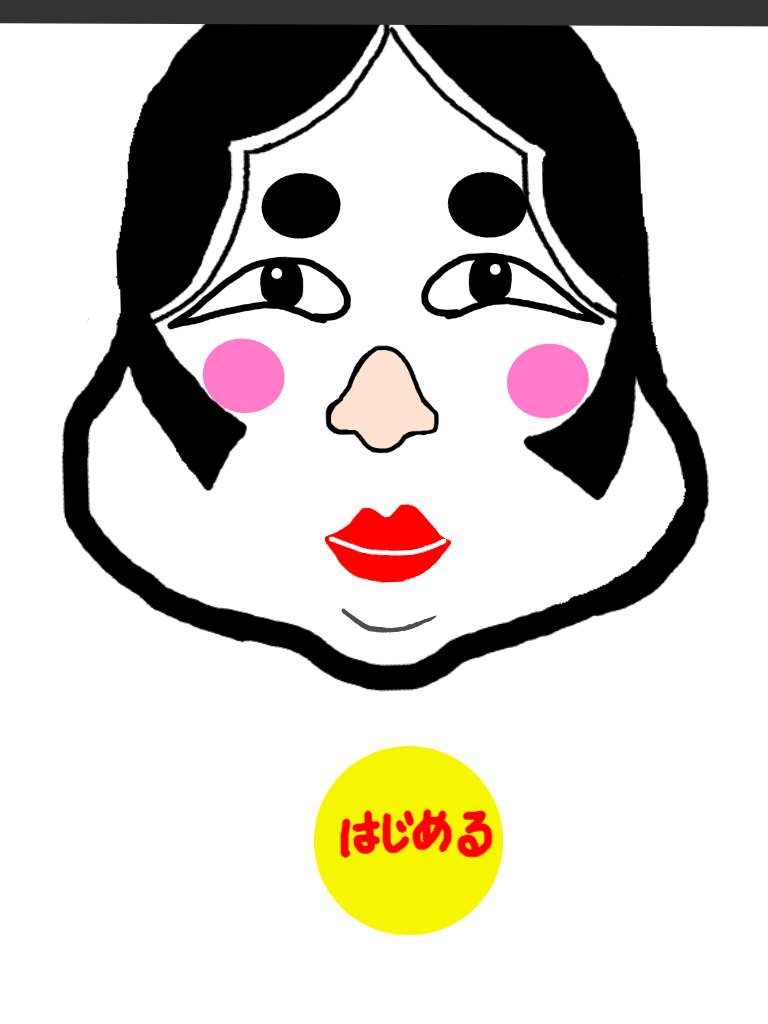 ○「はじめる」を押すと、めかくしがおります。○各パーツを、めかくしの中にスライドさせていきます。○すべてのパーツをスライドさせ、「オープン」を押すとめかくしが開かれます。○「もういちど」で同じ顔をもう一度遊べます。○「つぎのかお」で次の顔を遊べます。おかめ、男の人、女の人、鬼、うさぎ、全部で五つの顔があります。