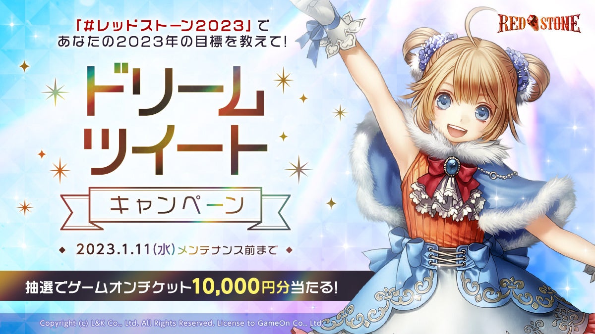株式会社ゲームオン[本社:東京都渋谷区、代表取締役社長:文 智秀(ムン ジス)]は、オンラインRPG『RED STONE(レッドストーン)』において、「RED’s トリプルドリーム年末祭」の第3弾として、「ドリームツイートキャンペーン」を2022年12月28日(水)より開始いたしました。