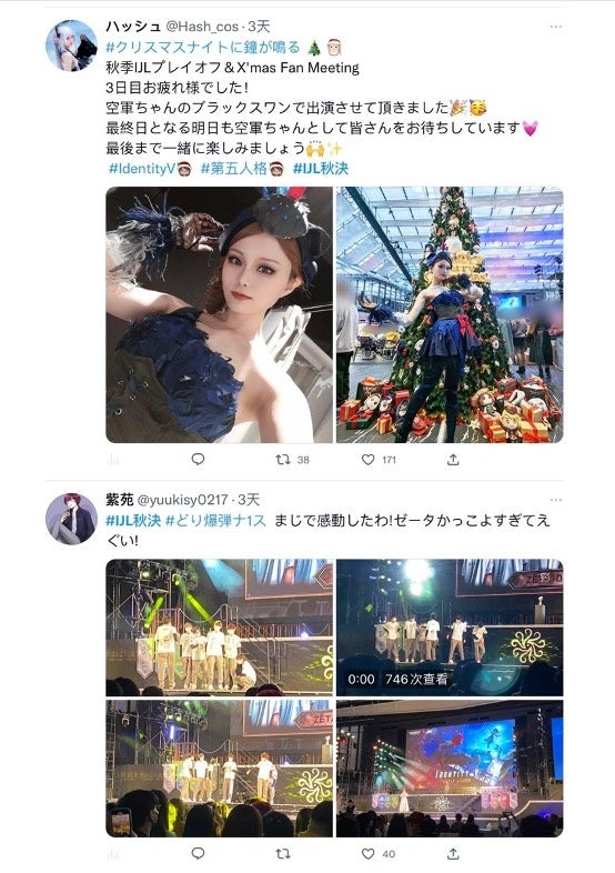 IJL決勝期間中、Identity V IJLが日本で話題を呼び、TwitterなどのSNS上ではいくつものハッシュタグが盛り上がりを見せました。 #どり爆弾ナ1ス、#ZETA優勝 などのハッシュタグがトレンド入りしたほか、TikTokでは #IJL秋決応援なう# のハッシュタグが登場。IJL応援のためのプレイヤー参加や動画投稿を促し、プレイヤーたちもIJLをオンラインで応援し、議論を繰り広げました。