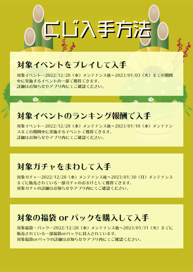 2022年12月28日(水)メンテナンス後~2023年1月31日(火)23:59まで