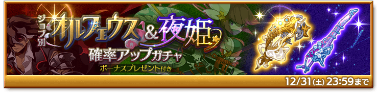 期間中、「ジョブ別 オルフェウス&夜姫確率アップガチャ」を販売します。