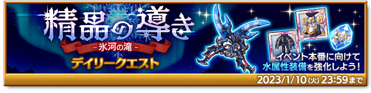 [精晶の導き-氷河の滝- 期間] 2023/1/10(火)23:59まで[アストレア 素材ドロップ&取得上限2倍キャンペーン 期間] 2023/1/11(水)4:59まで