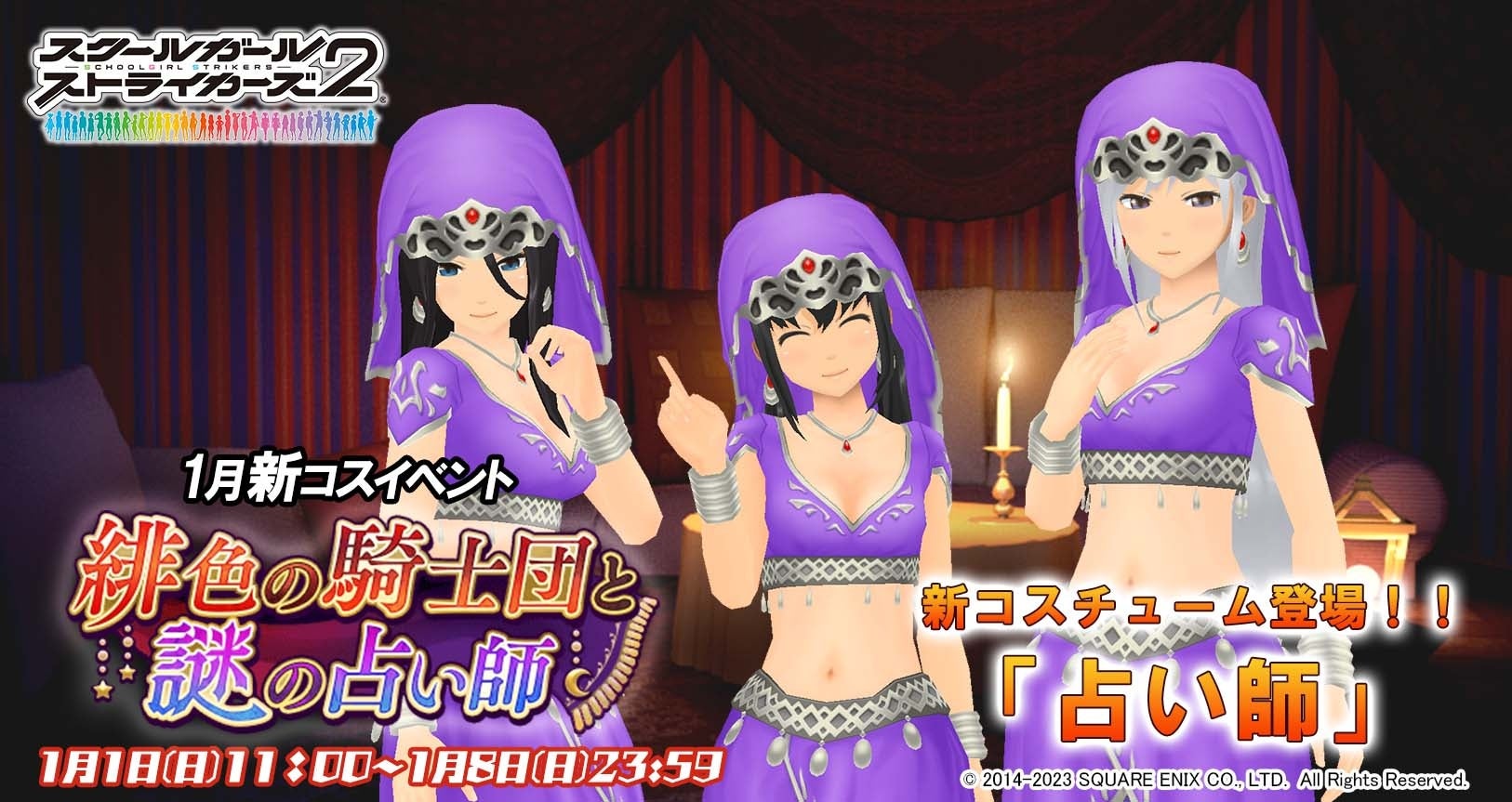 また、1月の新コスチュームイベント「緋色の騎士団と謎の占い師」も開催しており、新作コスチューム《占い師》が手に入るチャンスとなっております。