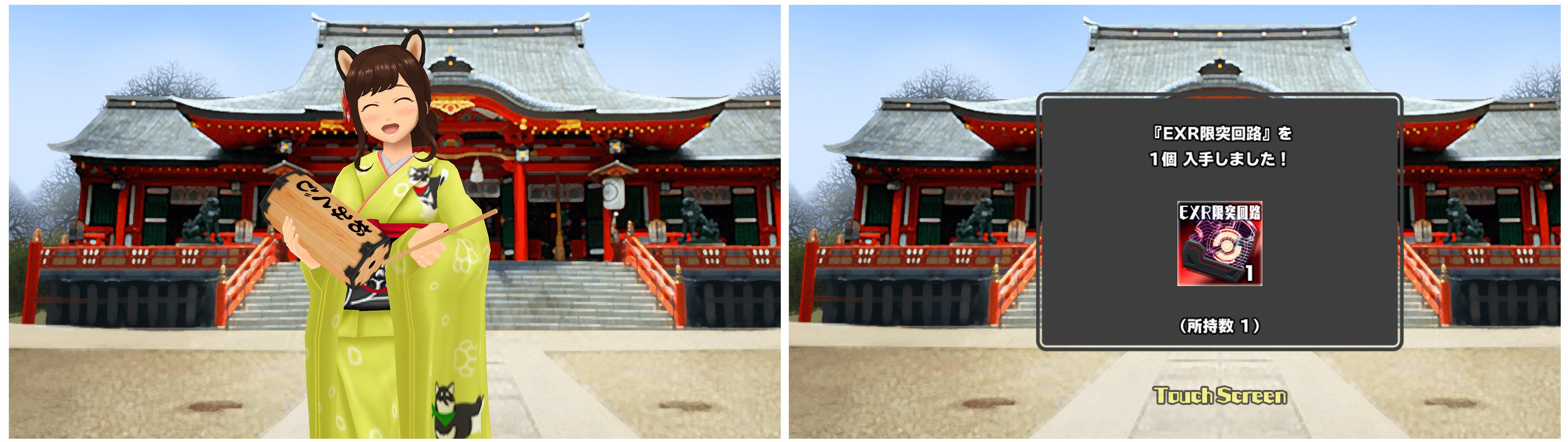 新春限定で登場する「新春特設」画面から毎日1回、女の子が《おみくじ》を引いて今日の運勢を占ってくれます。《おみくじ》の結果に応じてお役立ちアイテムをプレゼント!!