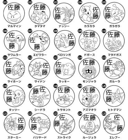「Pokémon PON ネームスタンプ」で選べるポケモンはこちらの151種類。ピカチュウやイーブイ、リザードン、ラプラス、ミュウツーなど、おなじみのポケモンが勢ぞろい。