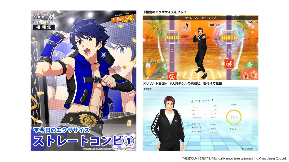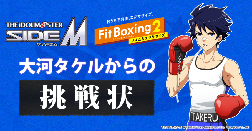 Fit Boxing公式Twitter(@FitBoxingInfo)では「インストラクターからの挑戦状」といったユーザー参加型のエクササイズチャレンジ企画を実施していますが、この度「アイドルマスター SideM」とコラボした「大河タケルからの挑戦状」を本日1月5日より開催いたします。