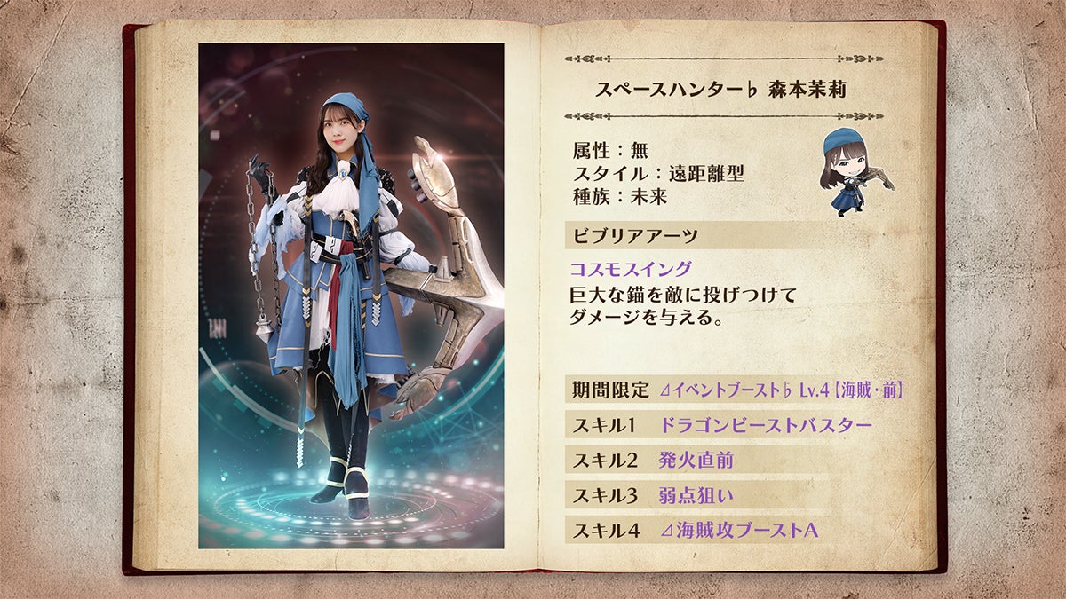 「★4 スペースハンター♭ 森本茉莉」はパーティ内の『宇宙海賊』ユニットの攻撃力を強化するイベント効果持ち!