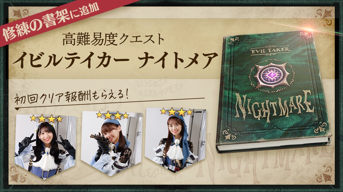 1月6日(金)メンテナンス後より、修練の書架に高難易度クエスト「イビルテイカー ナイトメア」が登場!