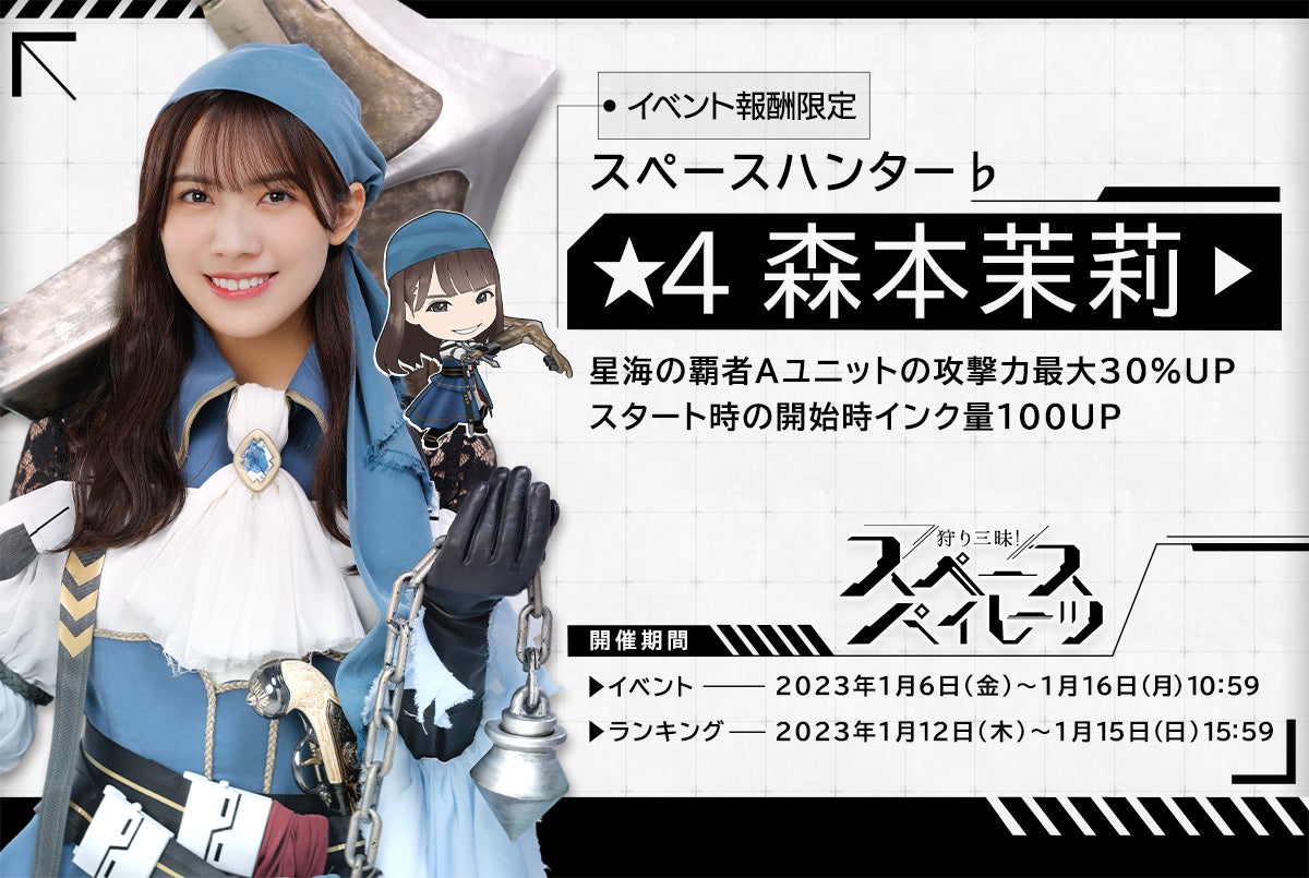 今回のイベントでは累計イベントポイント報酬でメンバーカード「★4 スペースハンター♭ 森本茉莉」を獲得することができます。