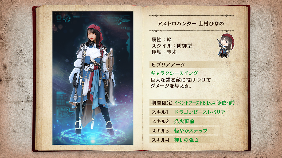 「★4 スペースハンター♭ 森本茉莉」はパーティ内の『宇宙海賊』ユニットの攻撃力を強化するイベント効果持ち!