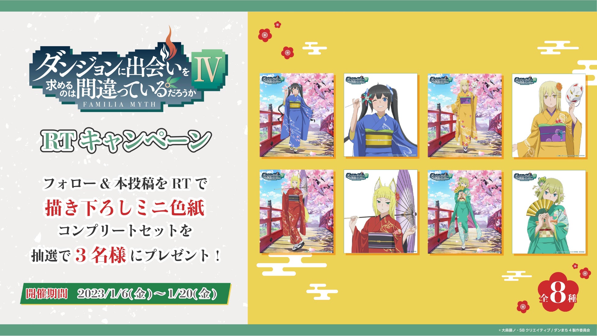 『ダンジョンに出会いを求めるのは間違っているだろうかⅣ』とのコラボ開催を記念して、Twitterにてフォロー&リツイートキャンペーンを開催いたします。
