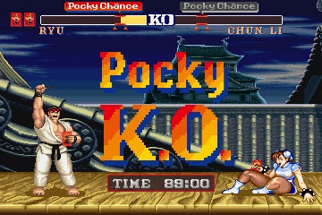「Pocky K.O.」を成功させた場合、「2ラウンド勝利」として扱われるほか、特別なエンディングを見ることができます。