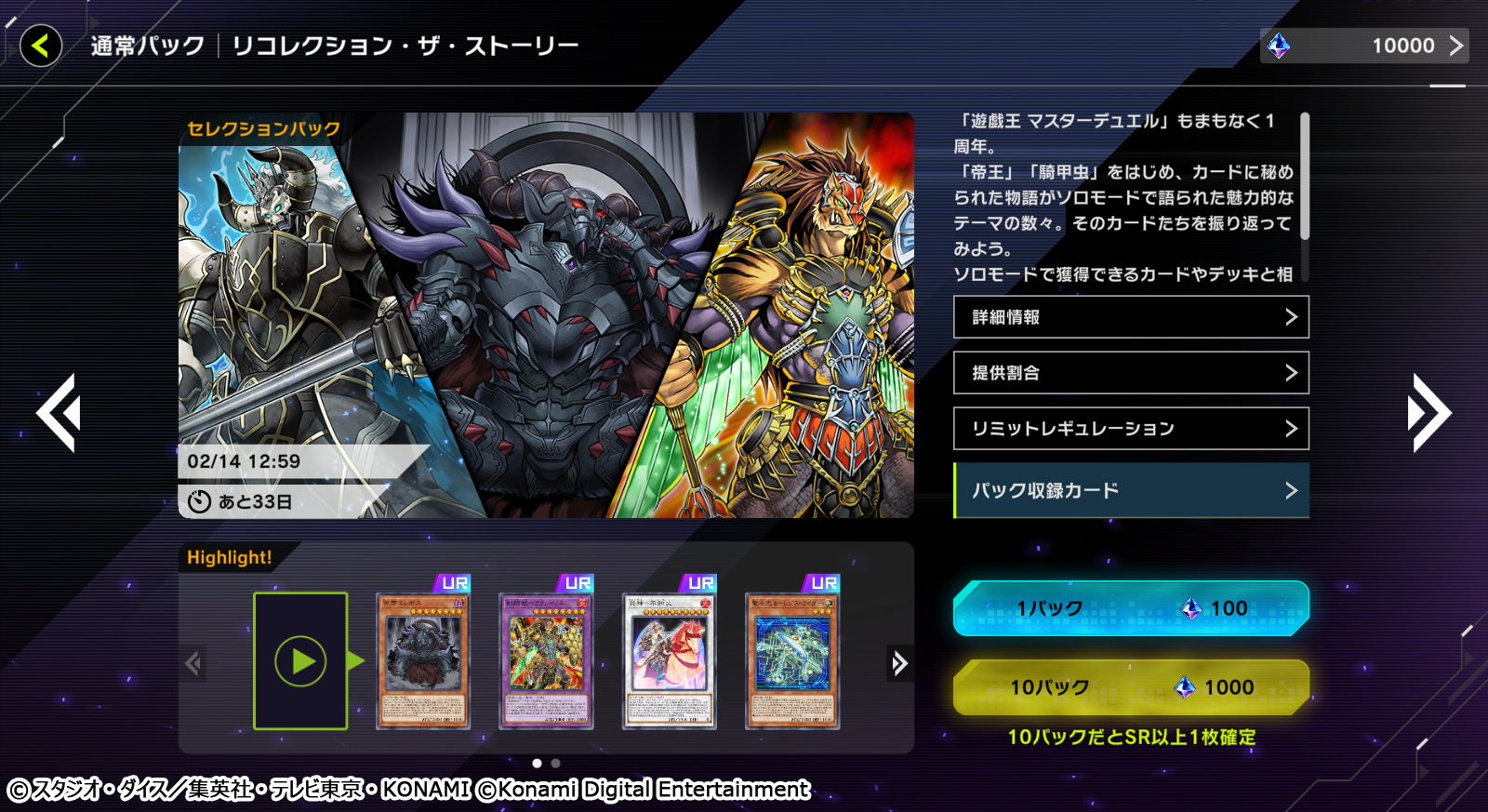 株式会社コナミデジタルエンタテインメントは、遊戯王OCG/TCGを最大限遊べるデジタルカードゲーム『遊戯王 マスターデュエル』で、本日2023年1月10日からゲーム内でセレクションパック「ヒロイック・ウォーリアーズ」、「リコレクション・ザ・ストーリー」を追加したことをお知らせします。
