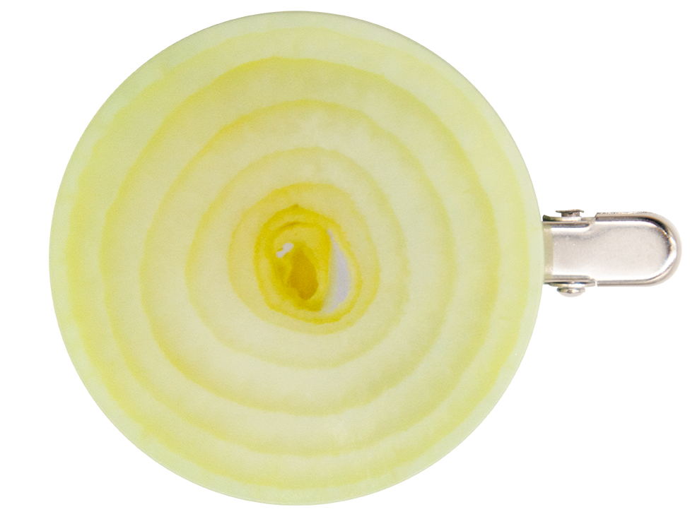 表から見ても裏から見ても焼肉デザインの前髪クリップ。クリップ部分がトングになっています。