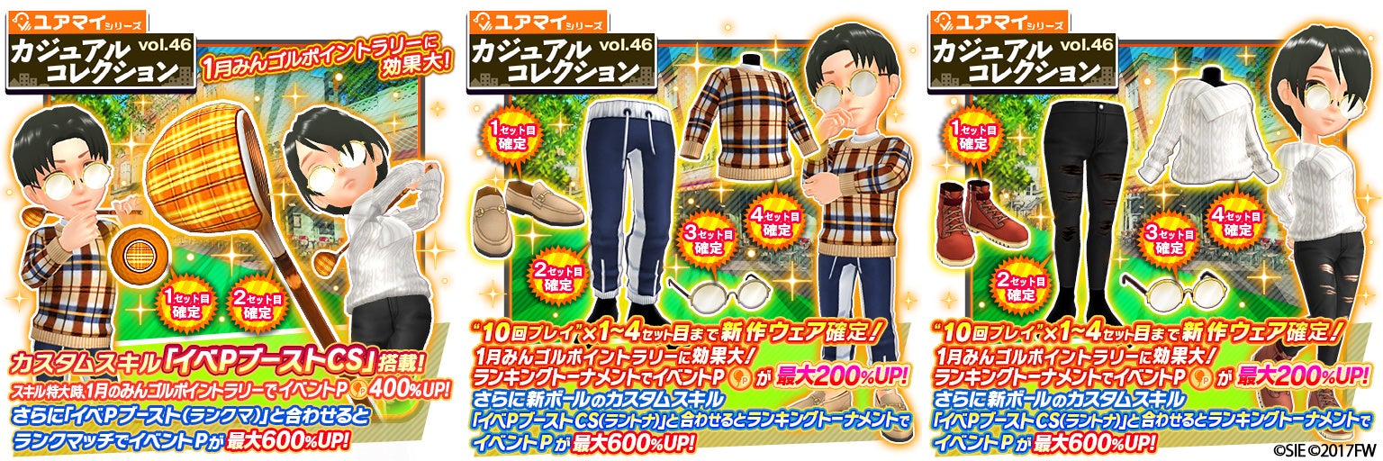 また、同日より「ゴルフをもっと身近に手軽におしゃれに」をコンセプトにした、『みんゴル』オリジナルブランドである「ユアマイ」シリーズのウェア・ギア(クラブ・ボール)が登場するプレミアムガチャ、「カジュアルコレクション Vol.46」も開催いたします。