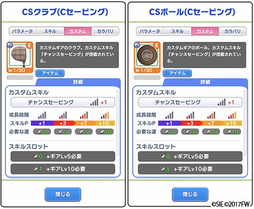 今回の「みんゴルポイントラリー」では、「SP/BP最大40%UP」「集中力」「フライヤーが発生しなくなる」「ホーミングショットが打てる」の効果があるカスタムスキル「チャンスセービング」を搭載した「カスタムギア」が登場いたします。