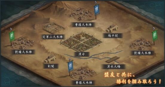 「漢中の戦い」は、2つの軍団がシステムによってランダムに同盟を結び、同盟vs同盟で戦闘を行う今までにない大規模のチーム戦となります!
