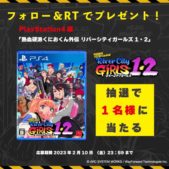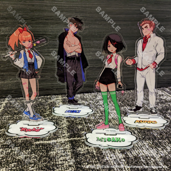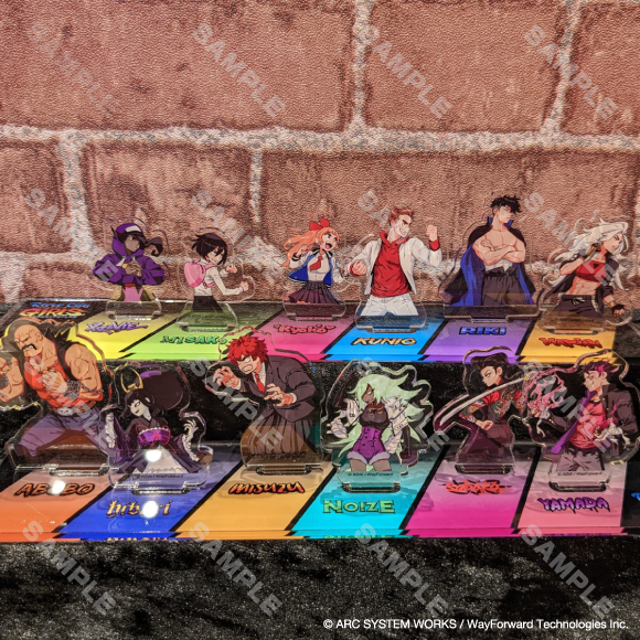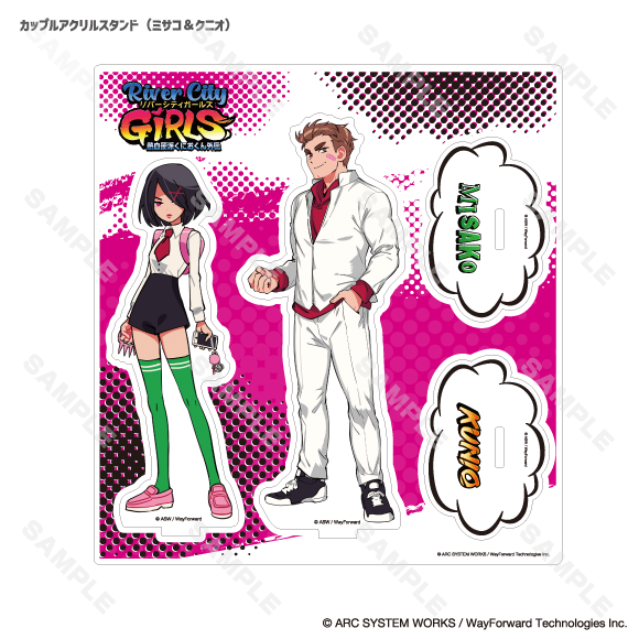 新発売のグッズは、カップルがペアになったアクリルスタンド、プレイアブルキャラとボスキャラが対になったアクリルジオラマ、ピクセル素材を使用した缶バッジコレクションです。さらに、リバーシティガールズ商品を合計3000円以上(税込)、購入いただいた方に先着で「オリジナルアクリルカード」をプレゼントします。