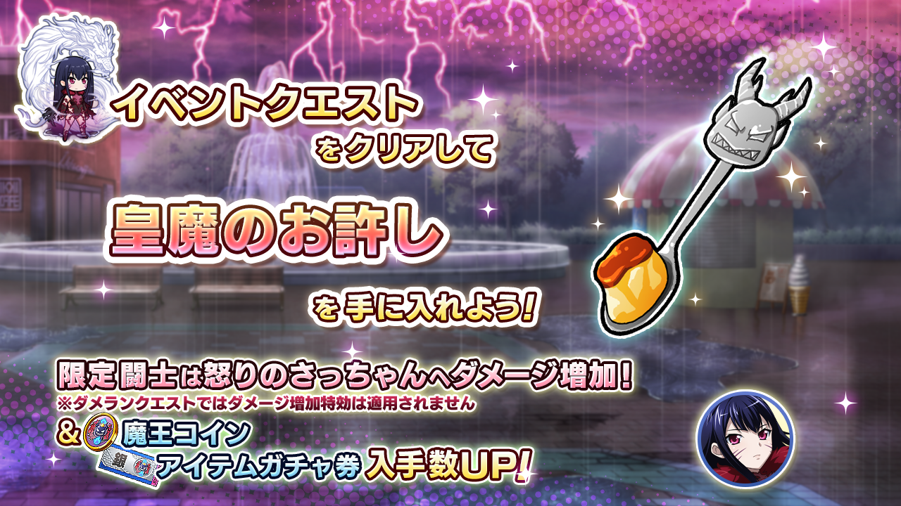 イベントに参加し、イベントシナリオクエストをクリアすると限定★3装備品「皇魔のお許し」が手に入る!