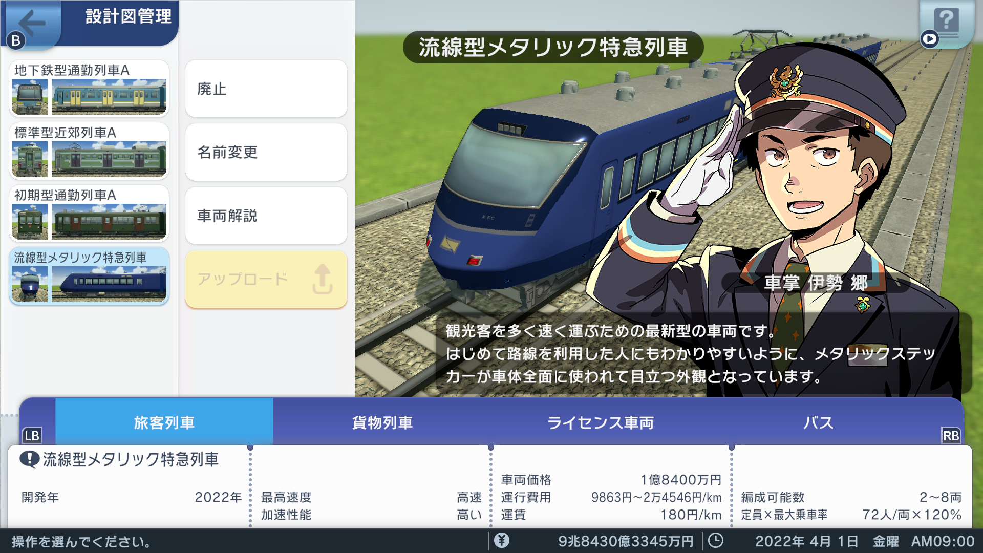 プランから実在車両の設計図を手に入れて、新しい列車を購入しましょう。