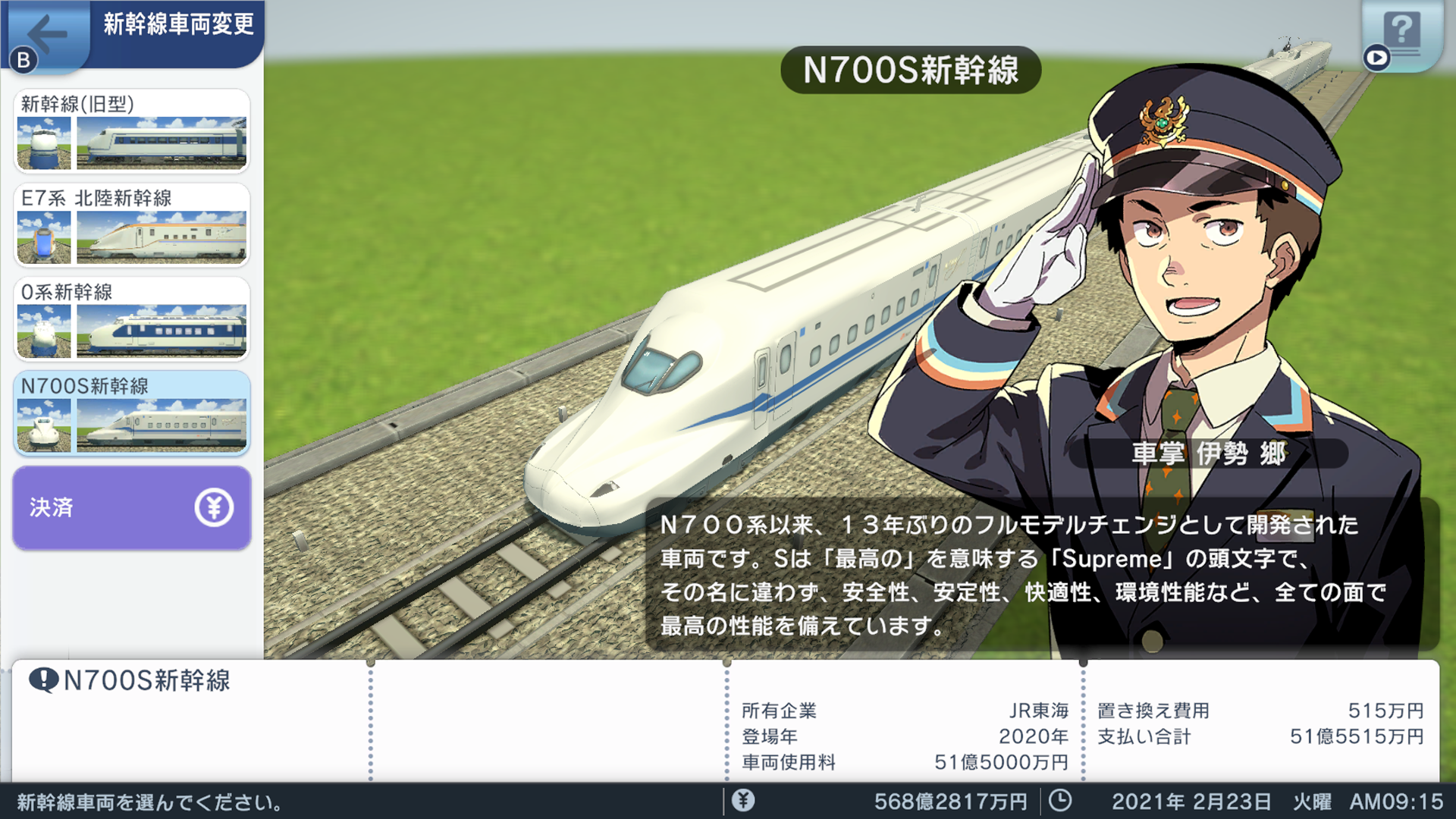 観光客をたくさん運んでくれる新幹線でも、実在の3車両を使用できます。