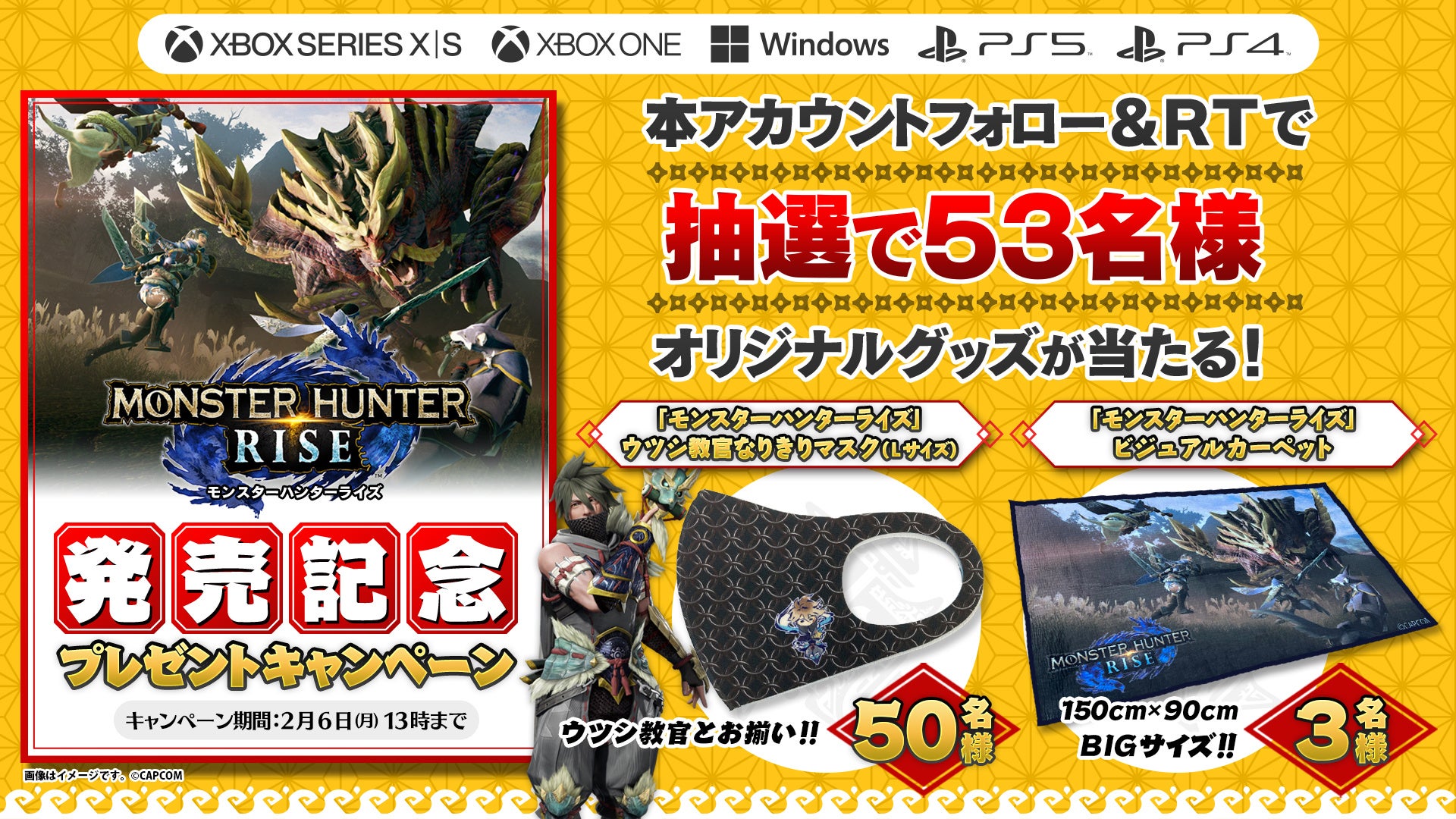 TwitterのXBOX/Win/PS版『モンスターハンターライズ』公式(@mh_rise_xwp)アカウントをフォローして、キャンペーンツイートをリツイートで参加可能!