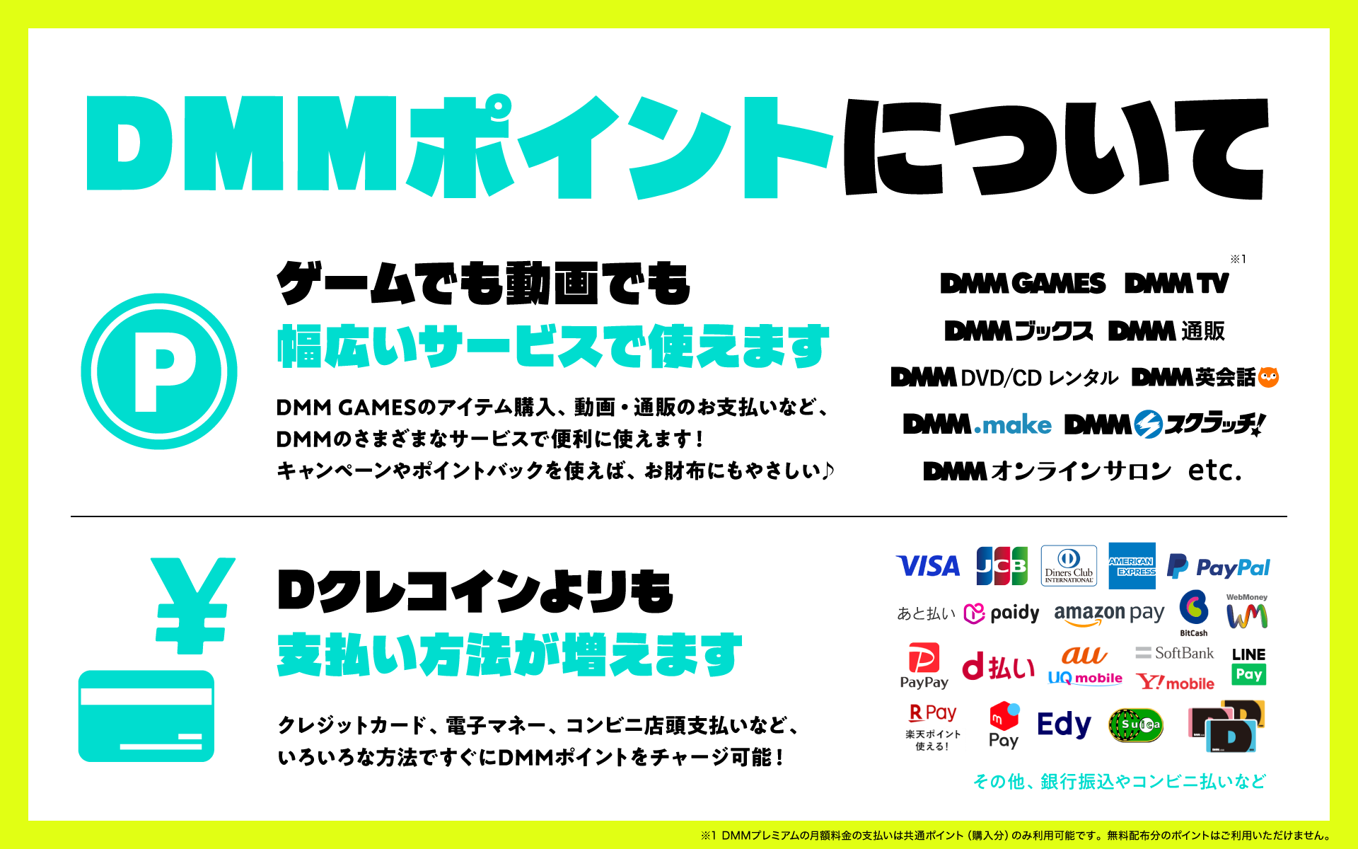 2)DMMの他サービスでも使える「DMMポイント(1ポイント=1円)」で遊べる!