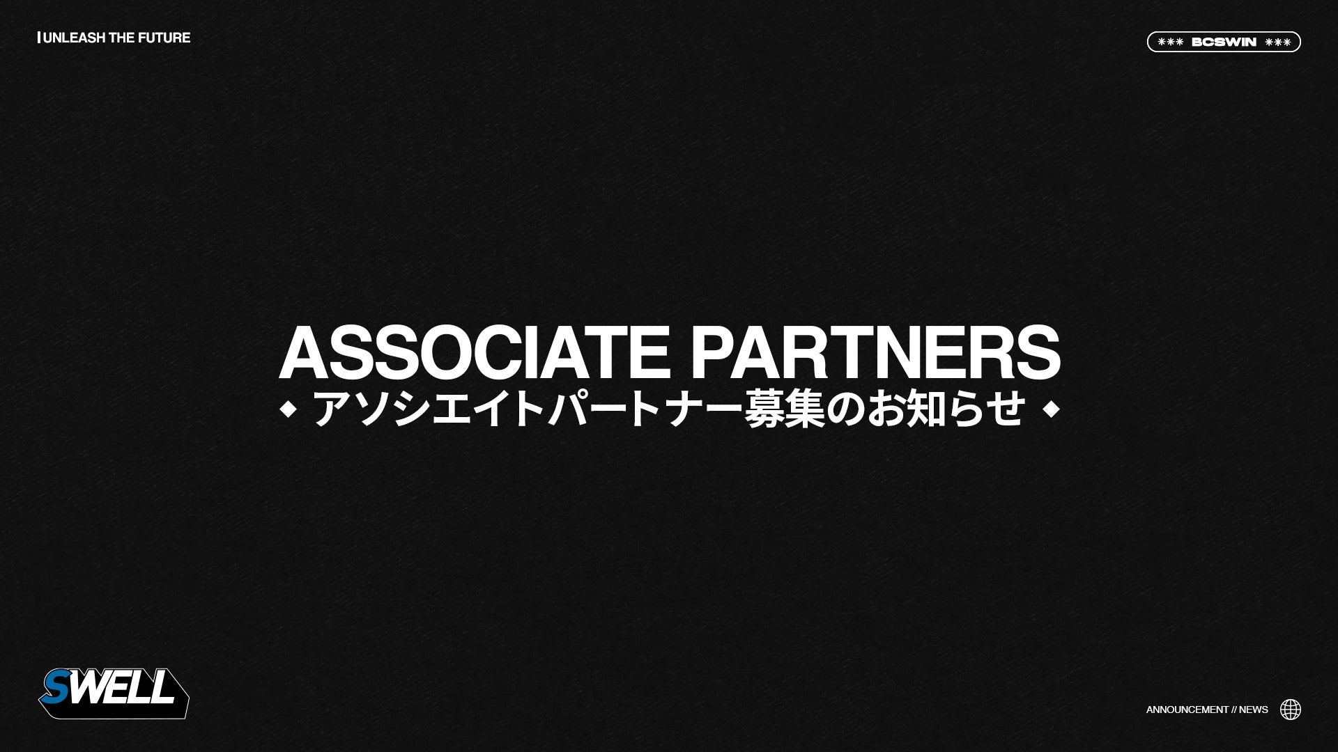 株式会社SWELL (東京都港区、代表取締役: 管野 辰彦、以下「SWELL」)は、共にBC SWELLを盛り上げてくださるアソシエイトパートナーの募集を開始しました。