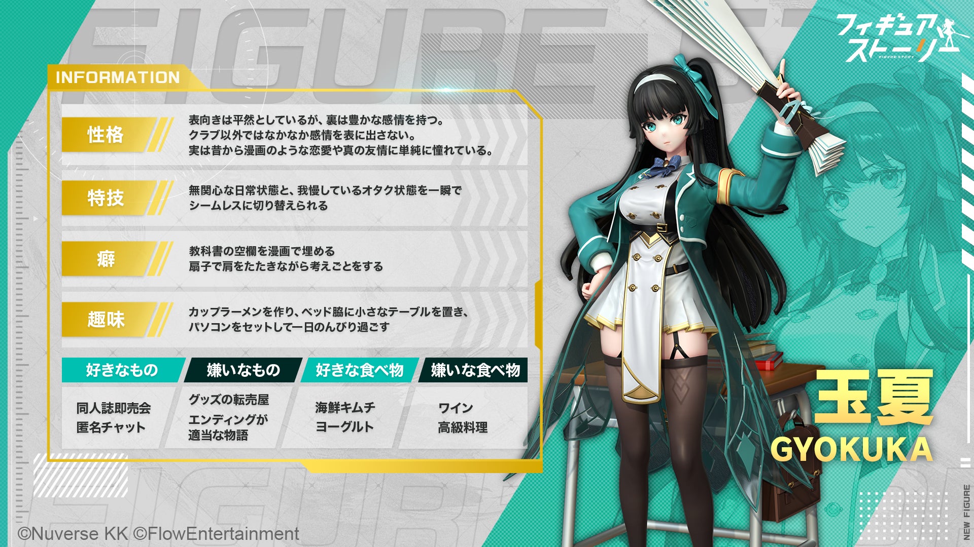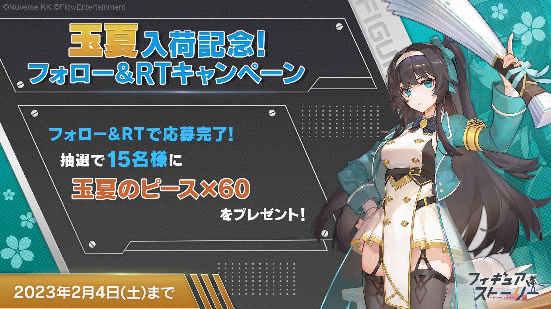 Nuverse株式会社は、運営するスマートフォン向け“フィギュアRPG”『フィギュアストーリー(以下ギアスト)』において、1月29日(日)に新フィギュア(キャラクター)の「玉夏(CV:佐伯伊織)」、および関連するシナリオイベントを実装いたしました。また、新フィギュアの実装を記念し、玉夏のフィギュアピースが抽選で当たるTwitterキャンペーンを行います。
