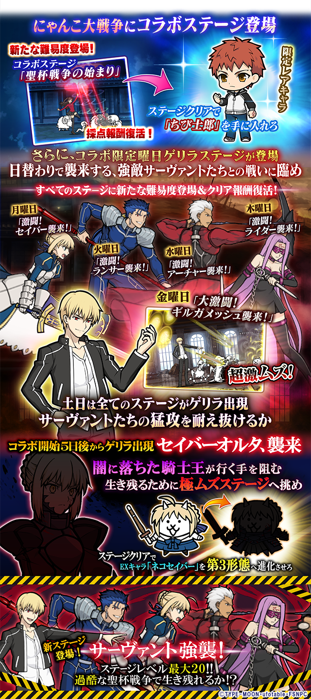 5日間ログインでコラボ限定EXキャラクター「ネコセイバー」、10日間ログインで「ネコ士郎」をゲット!