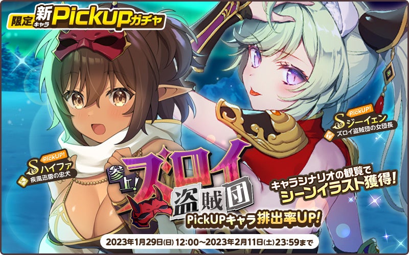 新キャラが追加されたPickUPガチャ「参上!ズロイ盗賊団」が開催中です!