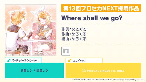 新たなリズムゲーム楽曲として、「Where shall we go?」(作詞・作曲:めろくる)の追加が決定いたしました。本楽曲は、「一緒に作ろう!第13回楽曲コンテストプロセカNEXT」の採用楽曲です。