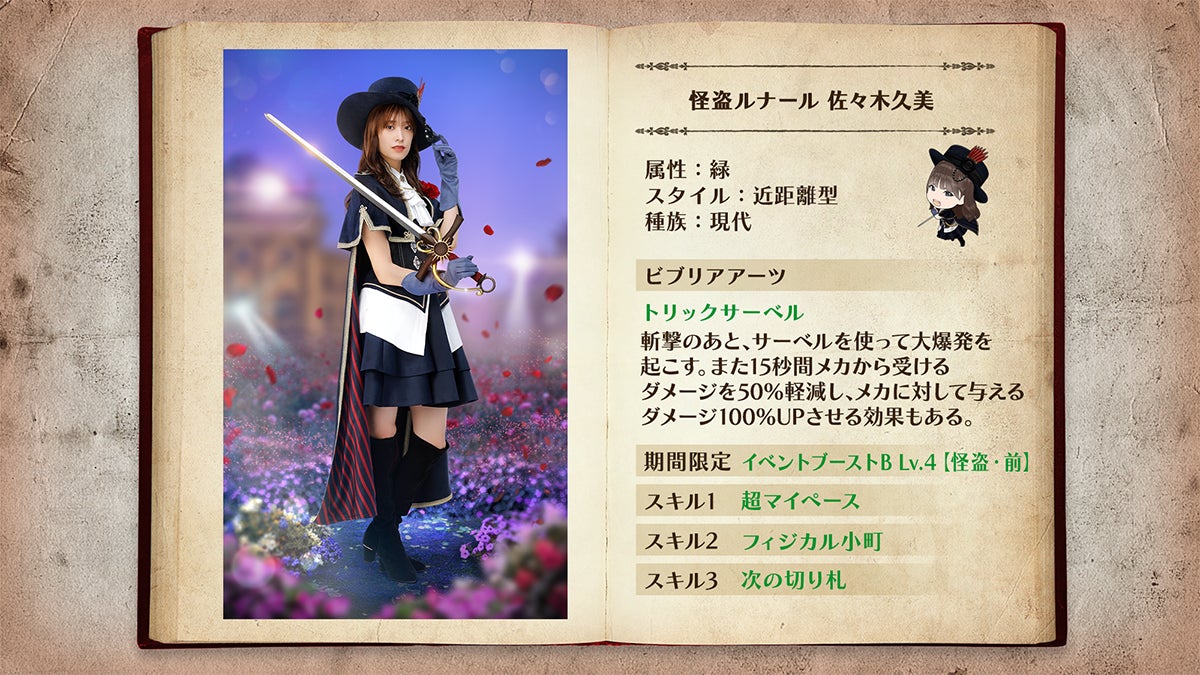 「★4 怪盗ルナール♭ 河田陽菜」はパーティ内の「怪盗ソレイユ」と「怪盗ルナール」ユニットを強化する効果持ち!
