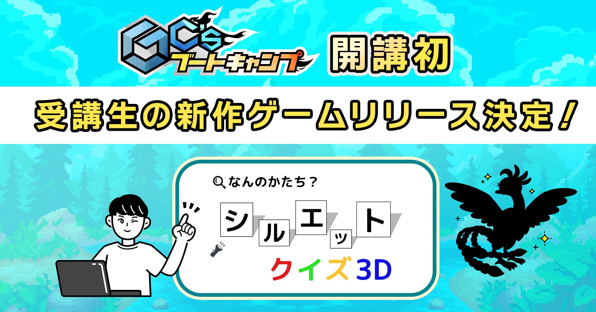 ご職業柄、プログラムを書かれていますが、実は自作ゲームを出すのは初めてでした。kunitokuさんは昨年12月5日、GC’sブートキャンプに入学され、開発期間1ヶ月で新作ゲーム「なんのかたち?シルエットクイズ3D」リリースへ。