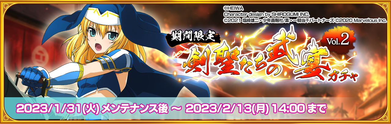 ▽「剣聖たちの武宴ガチャVol.1」「剣聖たちの武宴ガチャVol.2」開催期間
