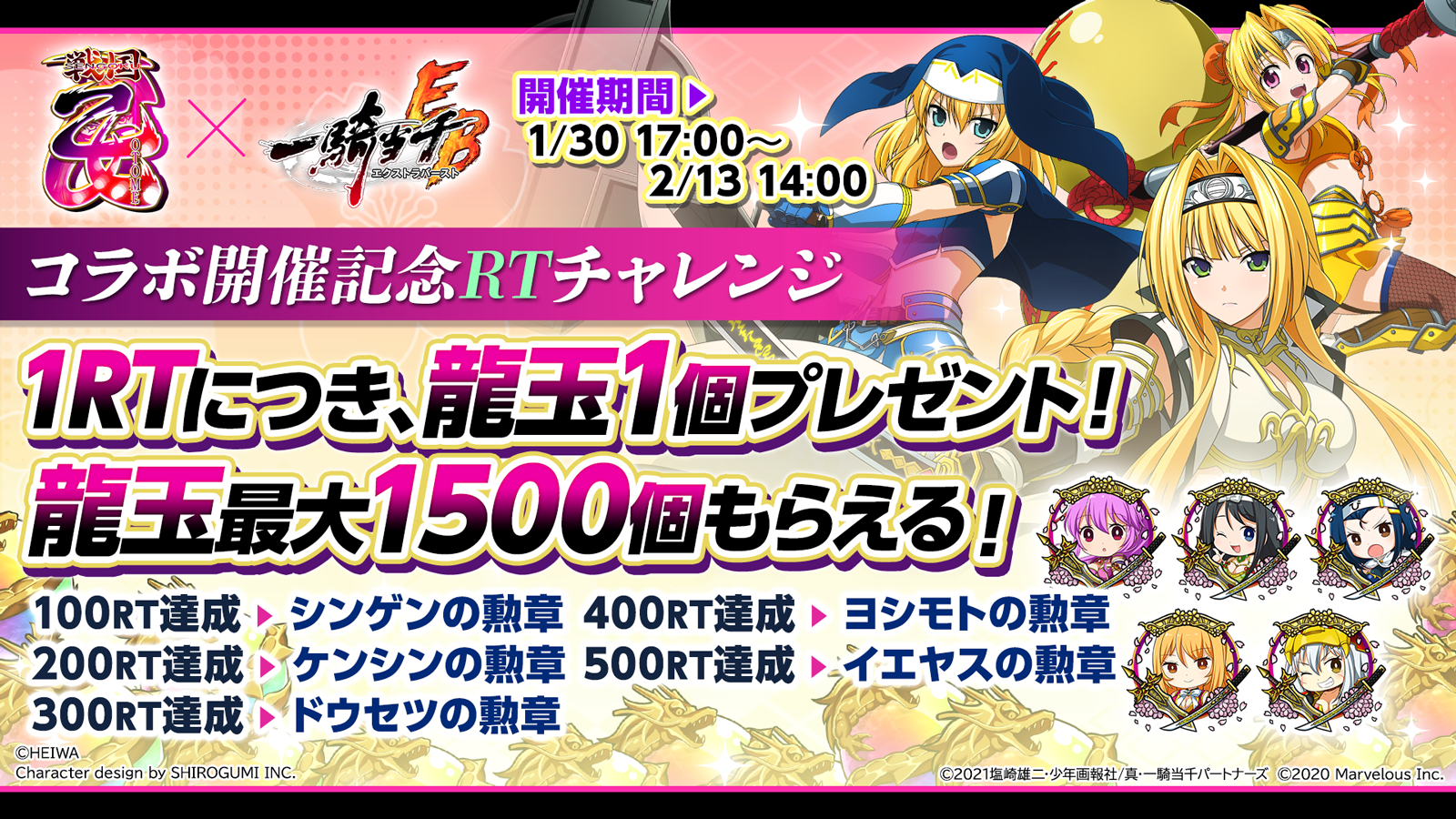 株式会社マーベラス(代表取締役社長 佐藤澄宣/所在地:東京都品川区)は、人気シリーズ「一騎当千」のAndroid/iOS向けゲームアプリ『一騎当千エクストラバースト』で、1月31日(火)から、「戦国乙女」とのコラボイベントを開始したことをお知らせいたします。