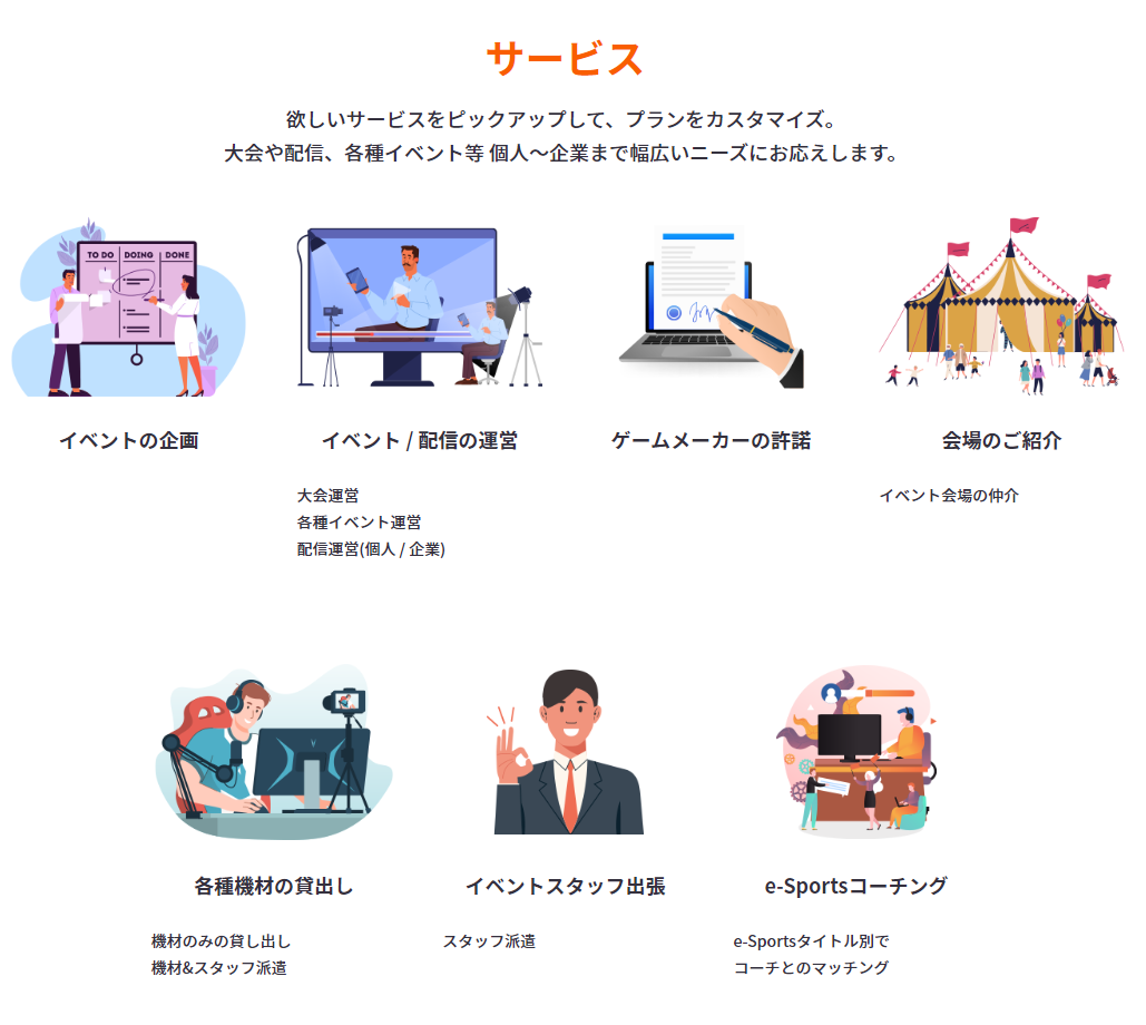 このような中において、年齢や性別・国籍・身体的な壁を超えて人と繋がれるエンターテイメントであるe-Sportsを新しい文化として発展させていくために、当社は、ゲーム関連事業が有するノウハウを結集したe-Sports関連サービス(イベントの企画、運営、配信、機材貸出、スタッフの派遣等)の提供を通じて、より多くの人や企業、団体の皆さまにご活用いただくことでe-Sportsの発展に貢献したいとの思いから、本サイトを開設いたしました。