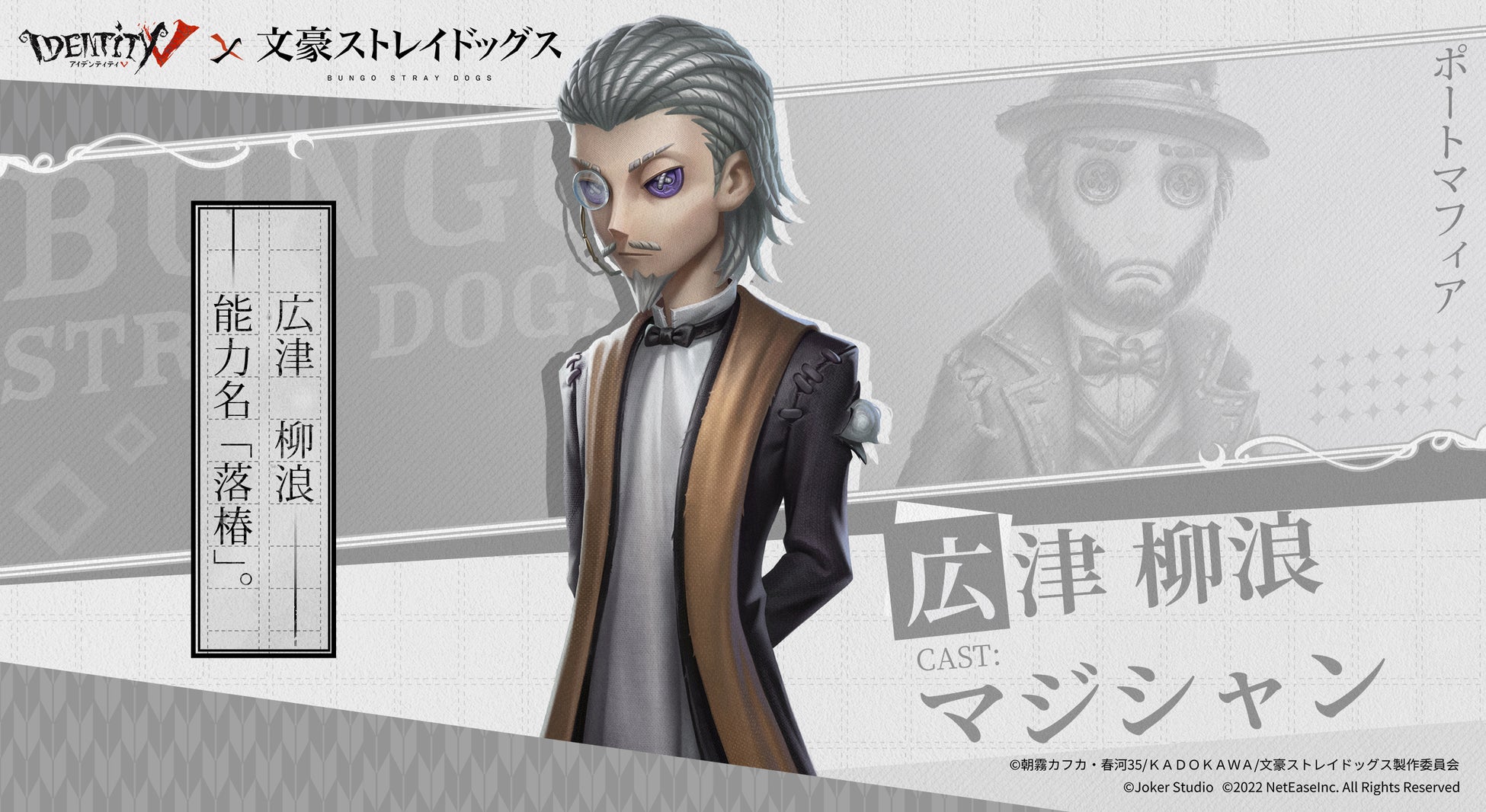 広津柳浪は闘争を仕切るリーダー。他のメンバーをはるかにしのぐ年齢と経験を持つ古株で、部下達に尊敬されている。しかし、荘園のマジシャンは、その風変わりなマジックがあまり受け入れられなかった。マジシャンがSSR衣装-広津柳浪に着替えたら、古参の知恵で追ってから逃れるためのインスピレーションを得て、安息の地を見つけられるかもしれない?