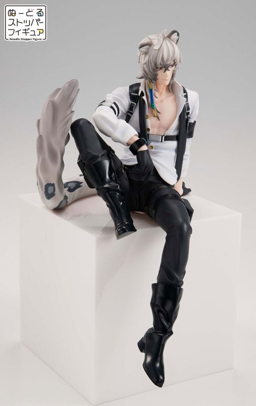 不敵な表情にグラデーションがかった髪が美しいシルバーアッシュは、大胆にはだけた白いシャツから覗く胸元がセクシー!シャツやパンツのシワ、ブーツの光沢まで見事に表現され、アーネスやサスペンダー、手袋にネクタイの小物まで丁寧な造形です。獣耳や躍動感のある立派な尻尾も健在!