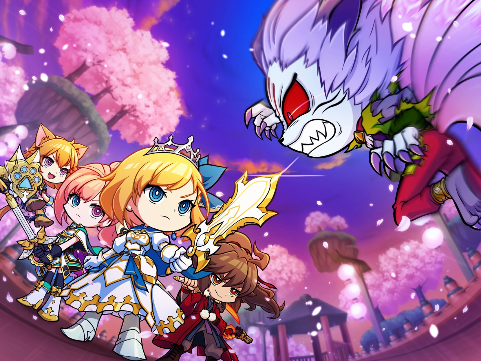 直感と戦略で挑む共闘ランニングバトルです。プレイヤーはお気に入りのキャラクターをパーティ編成しステージを駆け抜けます。道中にあるギミック(罠)やエネミーの攻撃を直感操作で回避しながらゴールドや宝箱を獲得し、各ステージのラストに登場するボスを戦略立てて討伐します。オートラン機能による手軽プレイでありながらも、瞬時の判断やプレイスキルが要求される、遊びごたえのあるアクションゲームです。