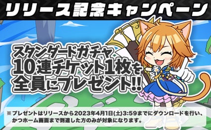 リリース記念として、プレイヤー全員に 10連ガチャが無料で1回引ける「スタンダードガチャ10連チケット」1枚をプレゼントします。