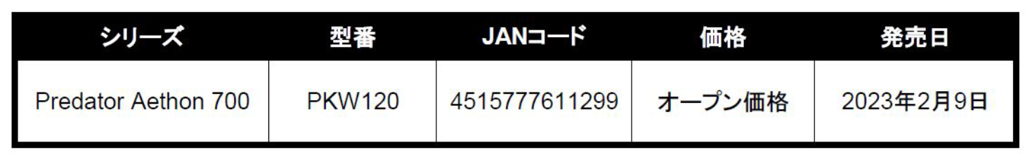 製品情報ページhttps://acerjapan.com/gadget/gamingkeyboard/predatoraethon/aethon700