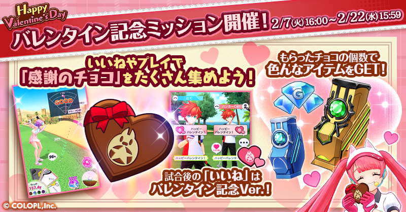 期間中、ゴルフツアーをプレイしたり、試合後に「いいね」をするとミッションが達成でき、「感謝のチョコ」を入手できます。