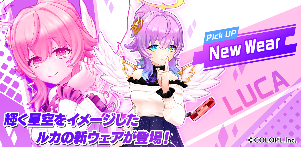 「ルカ(CV:茜屋 日海夏)」の新ウェア「コンステレーション」が登場する、ピックアップ新ウェアガチャが開催中です。