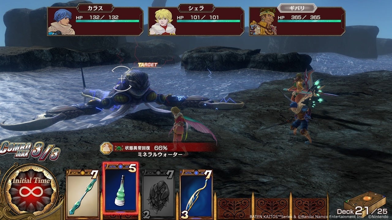 本作のバトルはリアルタイムで進行し、攻撃や防御、回復など戦況に応じて素早く「マグナス」を繰り出して戦うため、一瞬の判断力が要求されます。