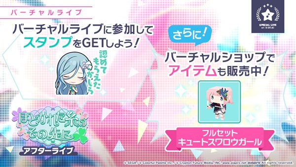 また、「ほどかれた糸のその先に アフターライブ」の開催に先立ち、2月10日(金)からバーチャルショップにて、フルセット「キュートスワロウガール」を販売中です。